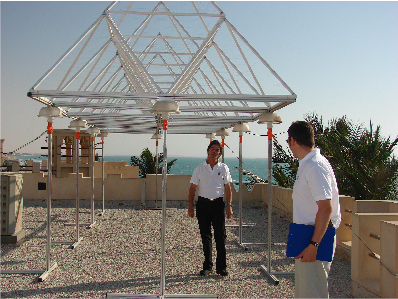 Contract of Swiss Government and support from the Emirate of Ras Al Keimah and UAE Authorities: very successful first test in a desert, demonstrating +800% more rainfall in arid region, as well as cloud coverage tests to decrease ground temperature by 5° Celsius for strong energy savings and comfort climate.