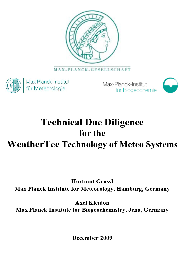 Basic Study by Prof. Dr. Hartmut Graßl, Max Planck Institute of Meteorology, Hamburg and Dr. Kleidon, Max Planck Institute for GeoBioChemistry, Jena